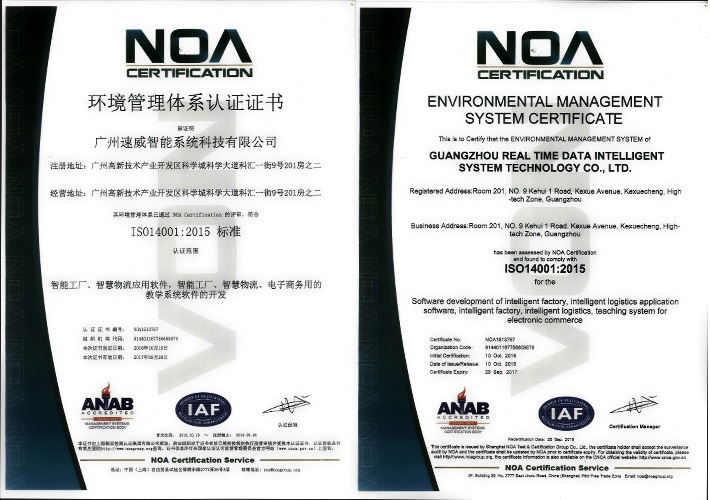 通過全體員工的努力,廣州速威智能系統科技有限公司(以下簡稱“廣州速威智能系統”)順利通過了NOA Certification ISO9001:2015質量管理體系、ISO14001:2015環境管理體系以及GB/T28001-2011idtOHSAS18001:2007職業健康安全管理體系的認證和審核,于2016年10月10日獲得認證證書。此次認證適用的范圍為智能工廠、智慧物流應用軟件,智能工廠、智慧物流、電子商務用的教學系統軟件的開發。據了解,以上范圍均是2015年9月,ISO 9001:2015、ISO 14001:2015新版標準內新修訂的。本次修訂所以影響最大,首先是因為2015CD版標準高屋建瓴,為質量管理體系標準的長期發展規劃了藍圖,為未來25年的質量管理標準做好了準備,更加適合于企業建立整合管理體系,更加關注質量管理體系的有效性和效率,更好增強企業的軟實力。
