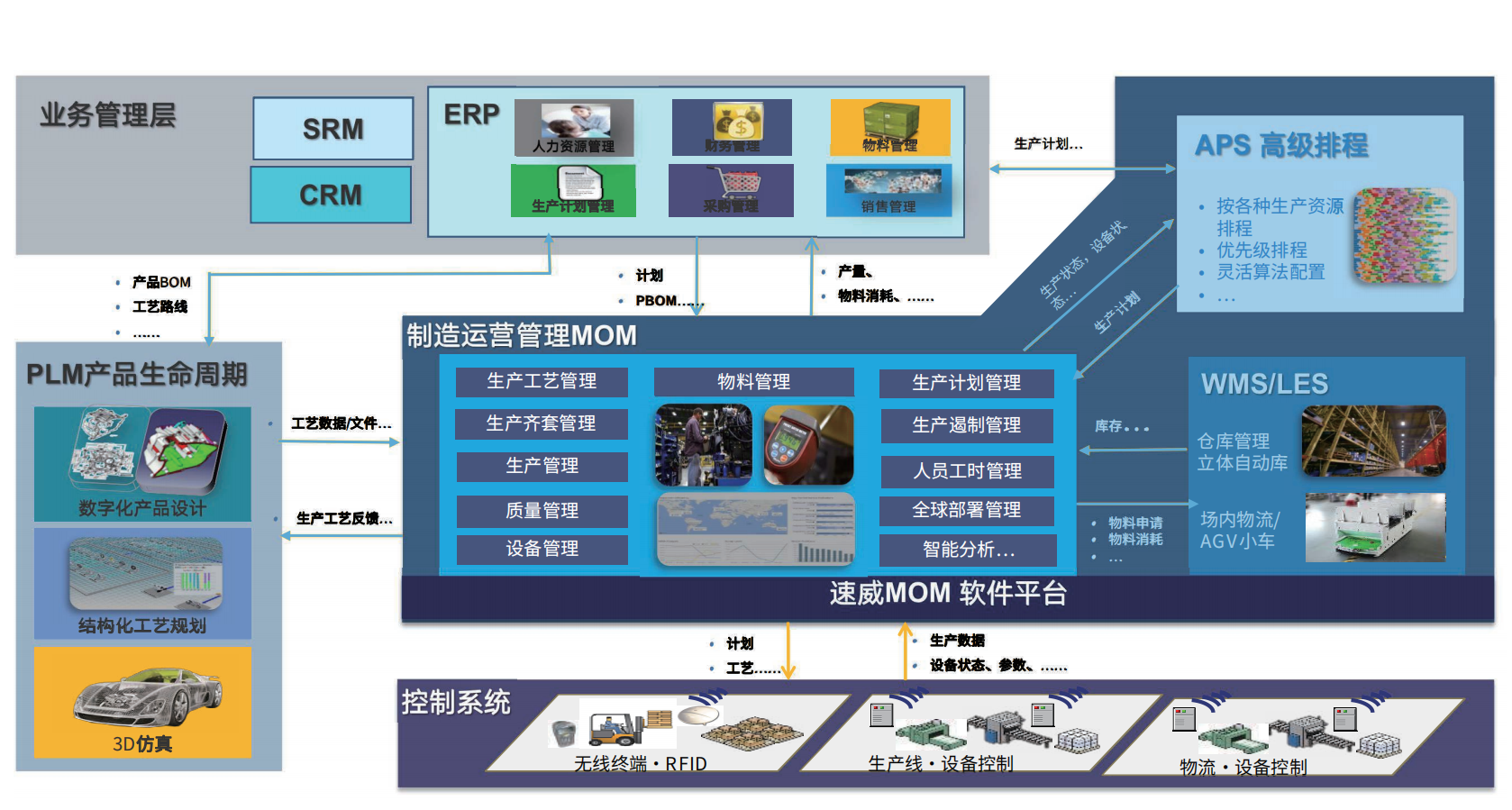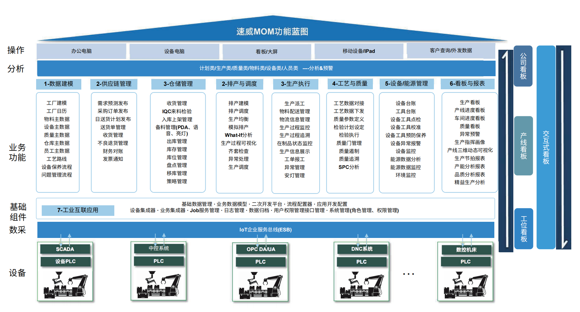 速威MOM-一體化的制造運營管理平臺,可以分三層架構: