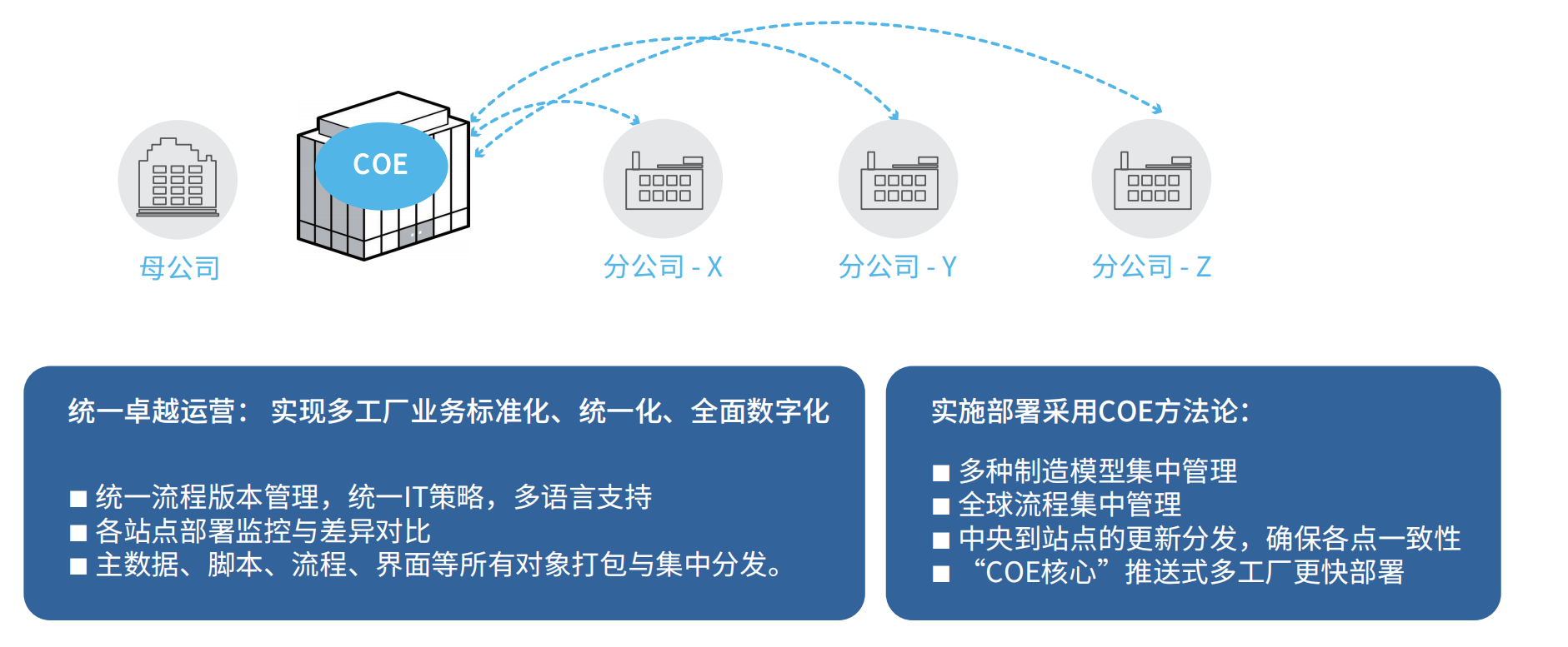 · COE核心模式方法論支持,業務流程集中管理