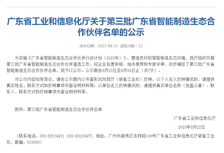 載譽 | 速威成功入選廣東省第三批智能制造生態合作伙伴名單...