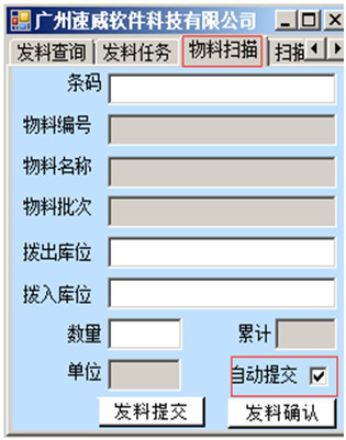 導入或下載發料計劃進入系統后,現場便可直接用PDA掃描發料,PDA自動檢索發料任務并自動提交。
