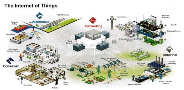 物聯網概念可以擴展到包括制造設備、機械、商業甚至服裝。可以想象一個物聯網就緒的收銀機,允許客戶自助結帳,同時還處理折扣、優惠券、促銷等等。幾乎不需要出納員了。