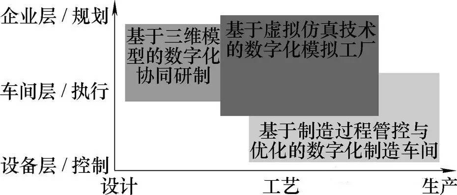 三維仿真技術即在汽車智能制造過程中充分利用三維仿真軟件進行產品設計、生產制造以及數字化工廠系統集成。如圖1所示,三維軟件系統涵蓋了從產品開發到產品制造的整個過程,并在這個過程中發揮著重要的作用。三維仿真技術具體應用可分下述三類。