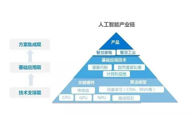 從人工智能自身的產業鏈來看,人工智能可以分成技術支撐層、基礎應用層和產品層。