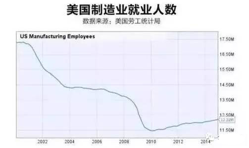 2000年以來,美國制造業就業人數總體呈下降趨勢。
