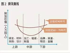 1992年,臺灣企業家施振榮提出了“微笑曲線”(Smile Curve)理論。微笑曲線認為,曲線左右兩側附加價值高,利潤空間大;而處在曲線中間弧底位置的加工、組裝、制造等,技術含量不高,附加價值低,利潤微薄。中國產業界對“微笑曲線”奉為經典并因此陷入迷惘。在這一思想指導下,中國制造業轉型升級的方向必須向所謂的價值鏈高端延伸,特別是走品牌化的道路。而面向零售市場和品牌之路是“敗九成一”的策略,風險極大,并非適用所有制造業企業。