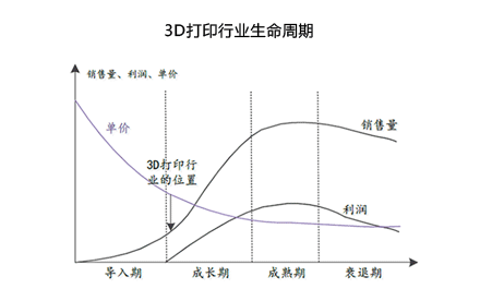 3D打印經過了近 40 年的發展,龍頭公司開始實現顯著盈利,市場認可度快速上升,行業收入增長加速。根據典型的產品生命周期理論,技術產品從導入期進入成長期的過程中往往表現出加速增長的特征,判斷目前3D打印產業正在進入加速成長期。