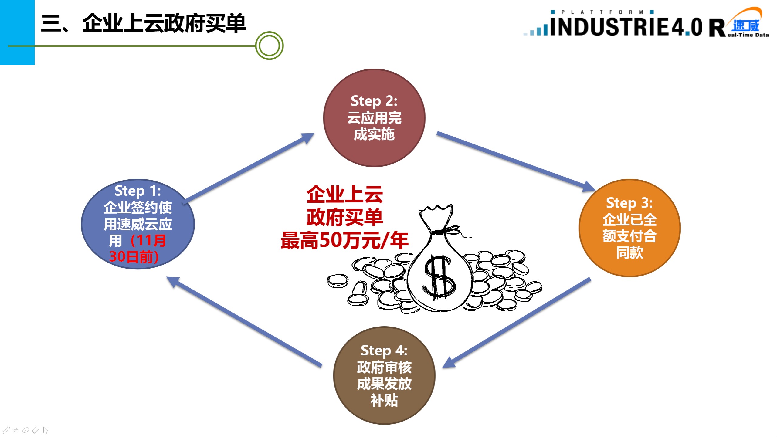 普惠政策,先到先得,截止12月份,“企業上云”政府買單,最高獎補50萬元/年。