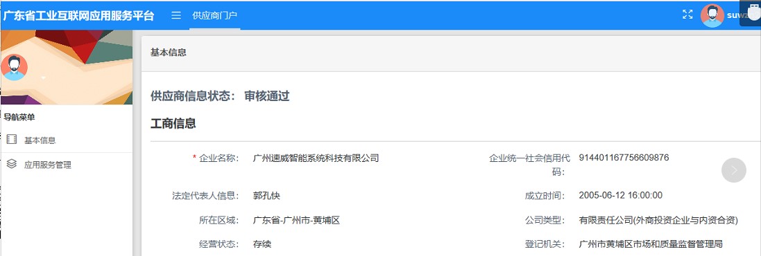 2017年11月21日廣州速威智能系統科技有限公司經廣東省經濟和信息化委關于發布廣東省工業互聯網產業生態供給資源池(第一批)的批準,成為。