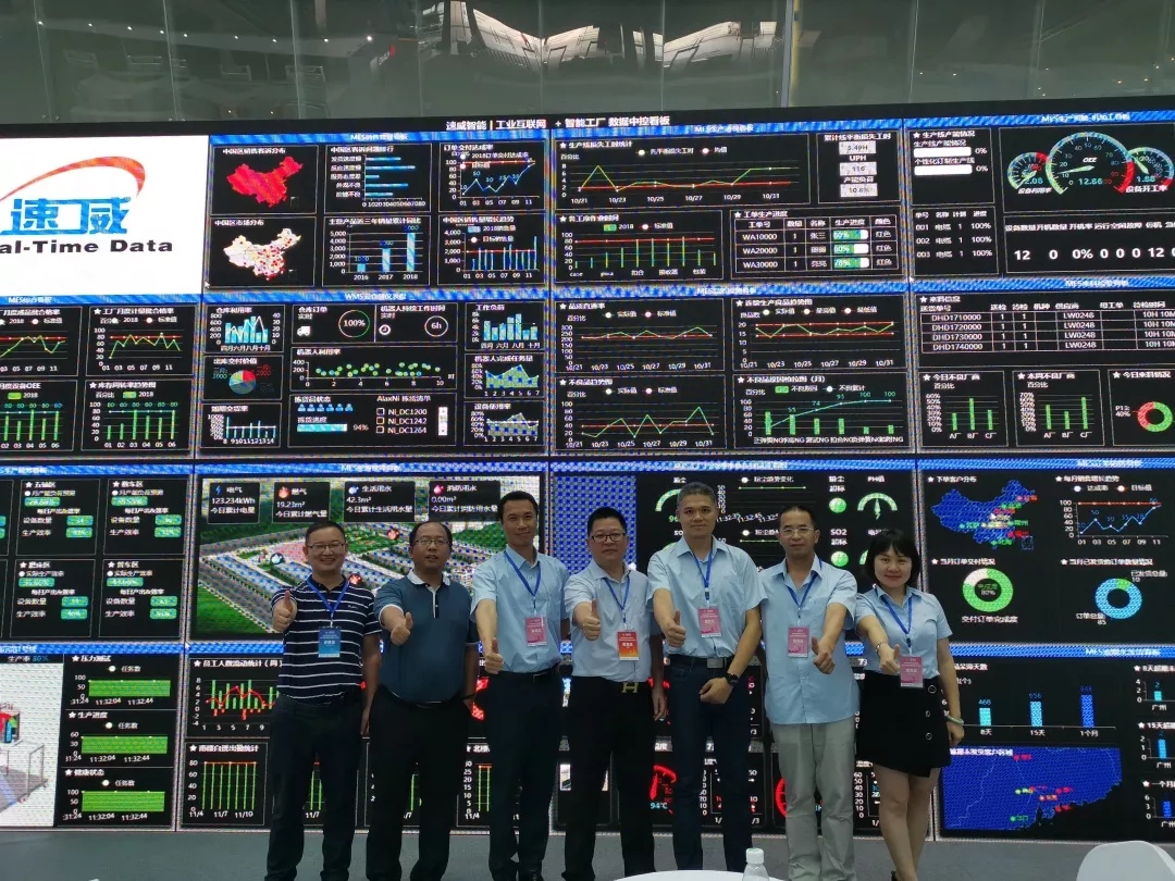 展會現場,速威智能工業互聯網+智能工廠數據中控看板吸引了眾多觀眾的目光。針對當前生產車間存在的問題,速威智能推出了專門針對生產車間管理的一整套可視化電子看板系統,包括物流跟蹤看板、生產統籌看板、設備OEE、來料檢驗看板、品質檢測看板、生產效率看板、能源管理看板、綜合看板等,利用電子看板系統可對生產車間的信息進行目視管理,方便相關人員能及時了解整個生產進度、問題出現的情況等與生產相關的信息,從而提高整個生產效率。