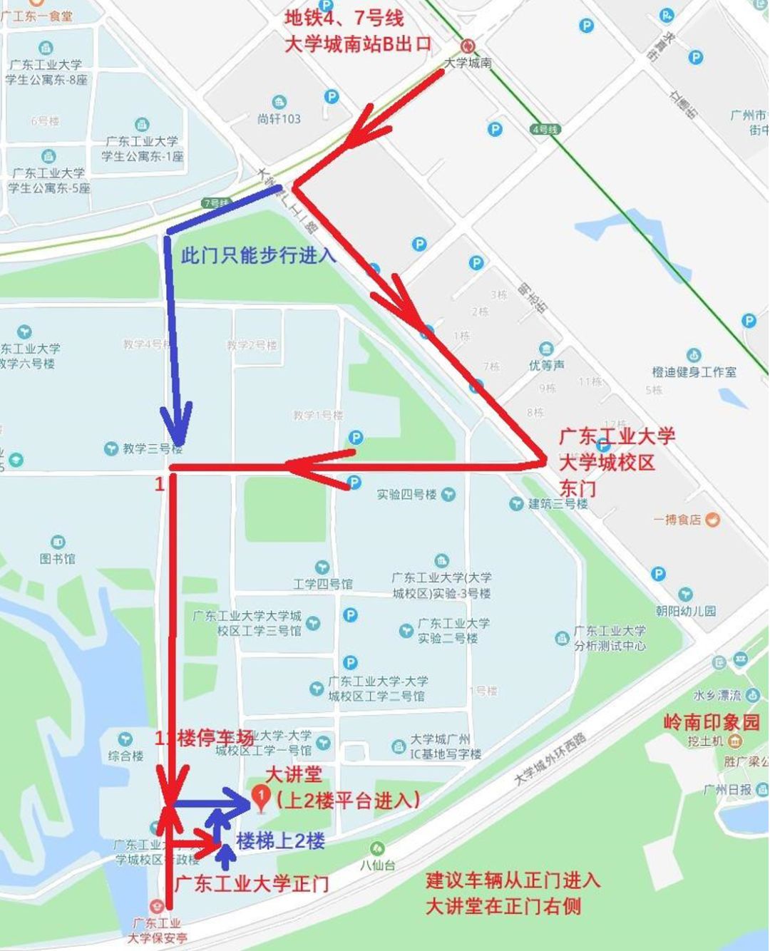 建議參會、參賽人員車輛從廣東工業大學(大學城校區)正門進入