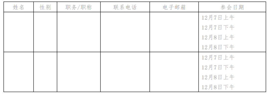2.非大賽決賽隊伍成員的參會人員需填寫如下回執內容:
