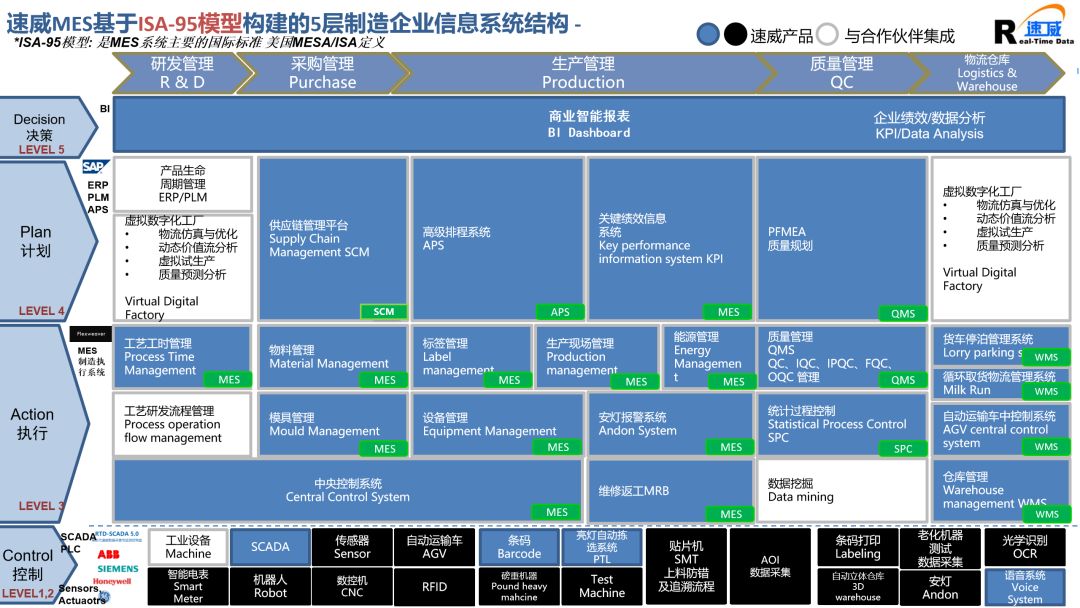 2005年,廣州速威智能系統科技有限公司成立。在14年的發展過程中,速威智能始終秉承以制造行業與物流行業信息化軟件研究、設計、開發、實施為核心,提供智能工廠與智慧物流整體解決方案為主體的專業服務。速威智能總經理郭孔快告訴記者,當時,國內很多制造型企業的制造現場與日本、美國等國外企業相比,管理水平明顯低下,尤其在數字化、電腦化、機械化、精益生產等方面,相差甚遠。為提高國內企業制造現場的管理水平,速威智能從成立至今只致力于做好兩個“現場”,即為制造企業的制造現場和物流現場提供數字化、透明化、實時化管理。系統根據ISA-95模型的定義,制造現場的管理,基本可以實現可視、可控、可追溯;物流現場的管理,可以實現高效配送、根據生產節拍和需求拉動物料配送等。