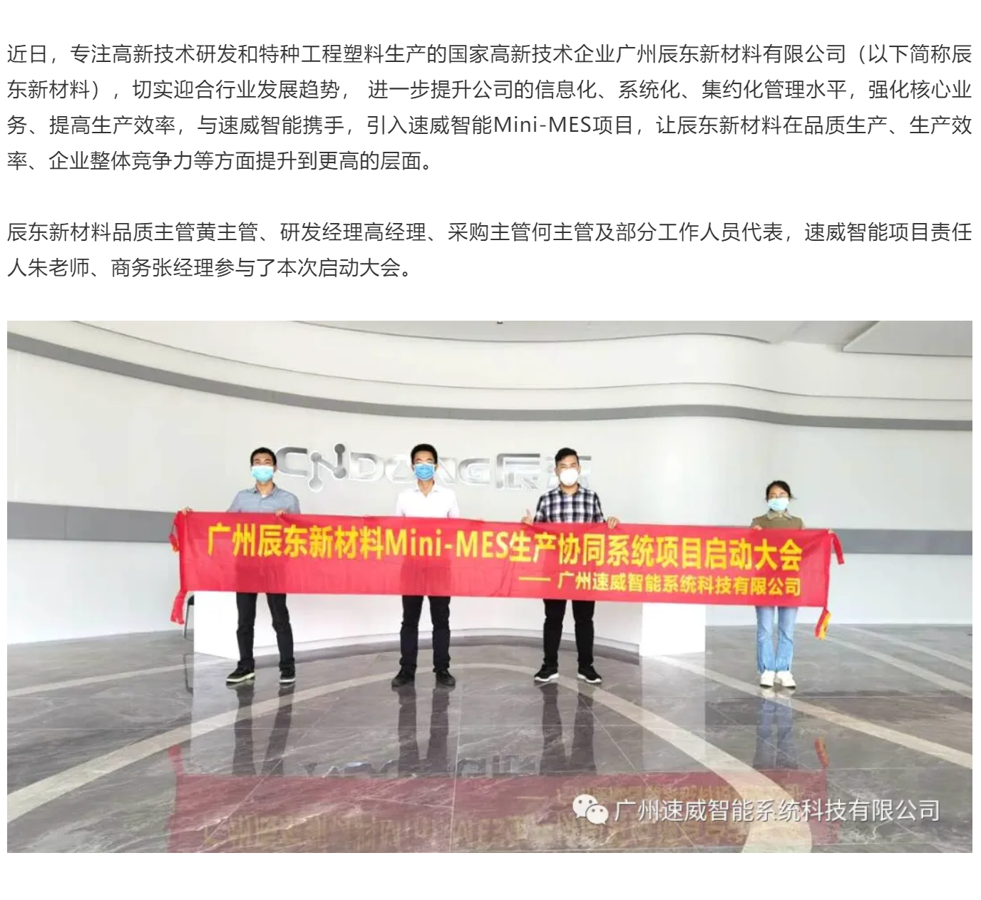 廣州辰東新材料有限公司成功召開速威智能MES項目啟動大會!