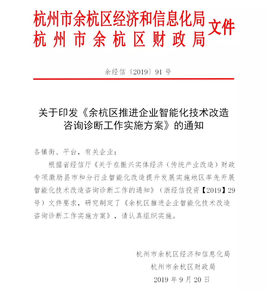 —— 杭州市余杭區經濟和信息化局辦公室