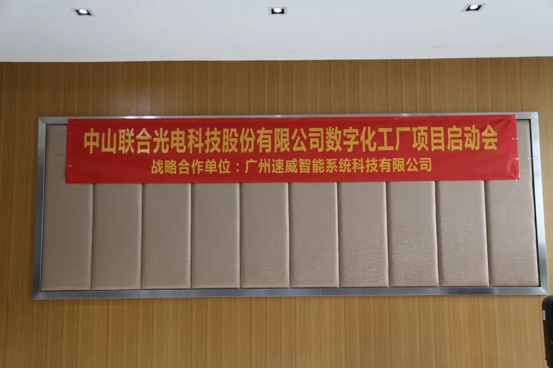 近日,中山聯合光電科技股份有限公司數字化工廠項目啟動會議順利召開。聯合光電總經理李總、副總經理肖總、供應鏈總監聶總、項目負責人況經理、IT部楊經理,速威智能總經理郭總及其它項目組成員共同參加了本次會議。