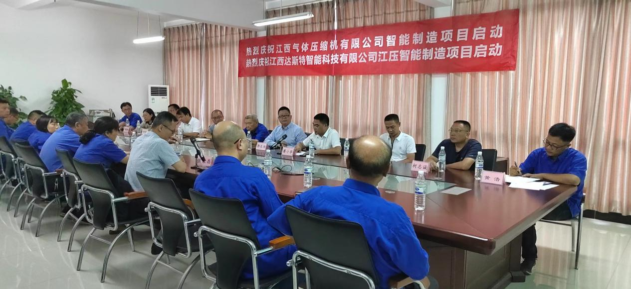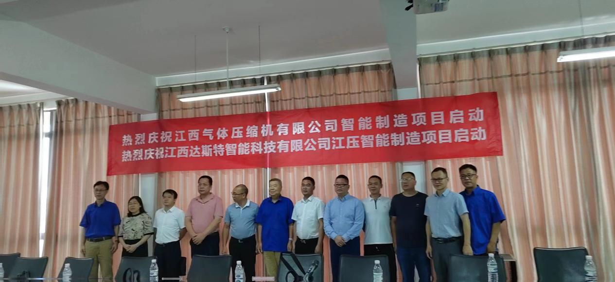 2022年7月19日,江壓智能制造項目啟動大會隆重舉行,江西達斯特智能科技有限公司(以下簡稱“達斯特”)偕同國內知名的eMES提供商廣州速威智能系統科技有限公司(以下簡稱“速威”),為江西氣體壓縮機有限公司(以下簡稱“江壓”) 打造符合中國制造2025要求的自動化生產設備。
