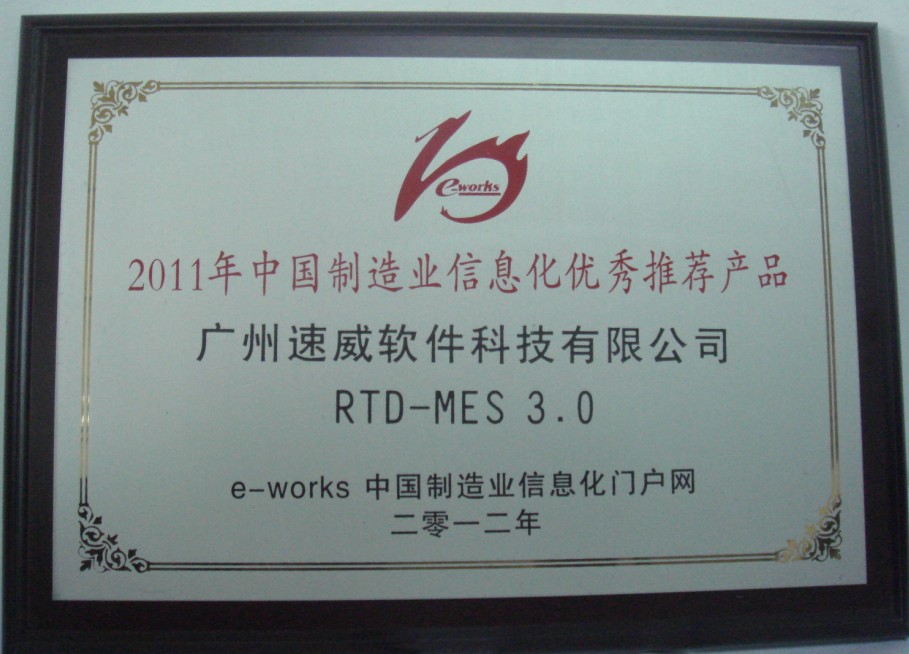“2012中國工業與信息化融合發展高峰論壇”上,廣州速威獲得“2011年中國制造業信息化優秀推薦產品”獎項。廣州速威也將會一如既往地竭盡全力解決客戶需求,為客戶提供滿意服務。與客戶共創美好明天!