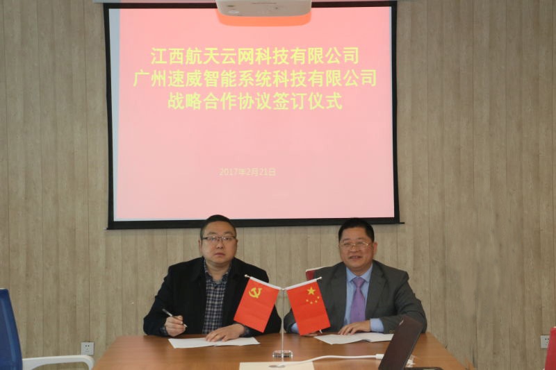 2017年2月21日,廣州速威智能系統科技有限公司與江西航天云網科技有限公司簽訂了戰略合作協議,標志了速威智能在打造中國市場智能工廠解決方案上又上了新的里程碑。
