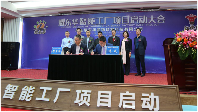 2018年1月18日,速威MES解決方案廣東耀東華智能工廠項目啟動大會在廣東佛山耀東華總部隆重舉行。中國領先的MES解決方案供應商廣州速威智能系統科技有限公司,攜手國家高新技術企業、廣東省林業龍頭企業耀東華公司,共同打造中國智造2025在林業產業、智裝行業、裝飾材料行業的標桿企業。