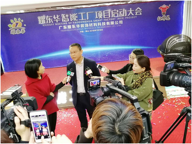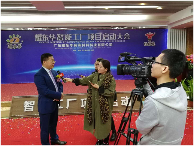 媒體爭相采訪廣東耀東華裝飾材料科技有限公司董事長曾敏華先生