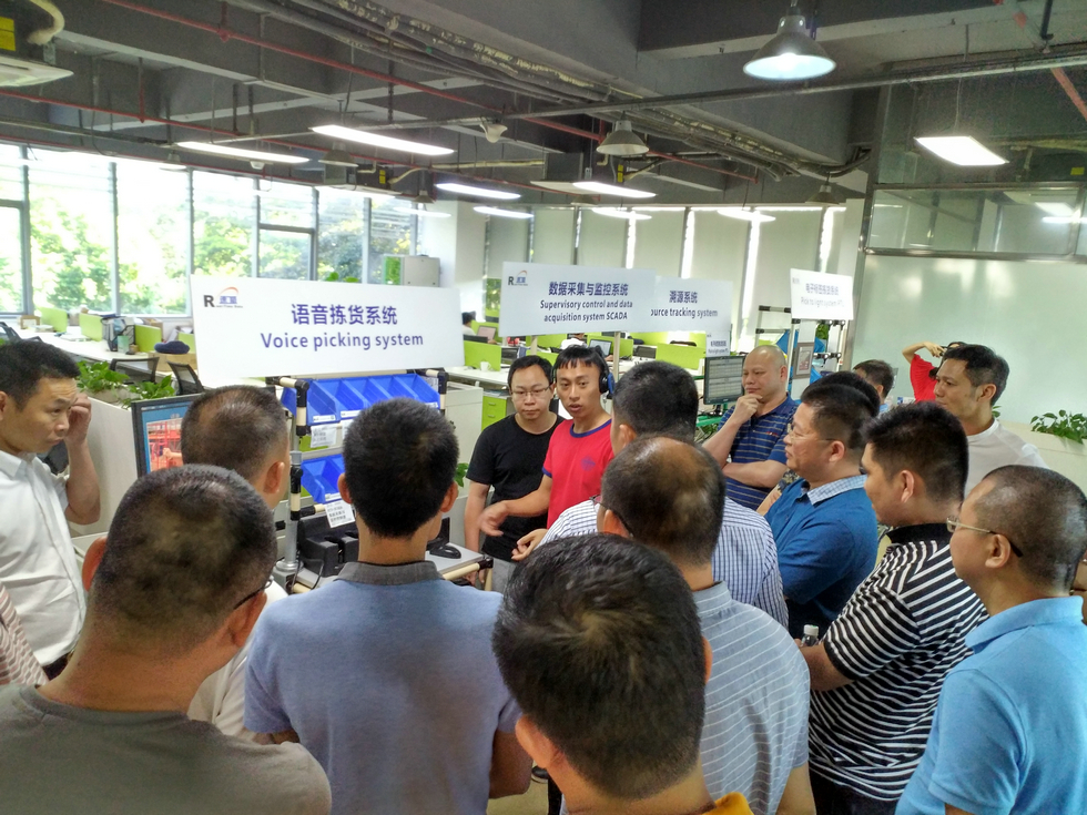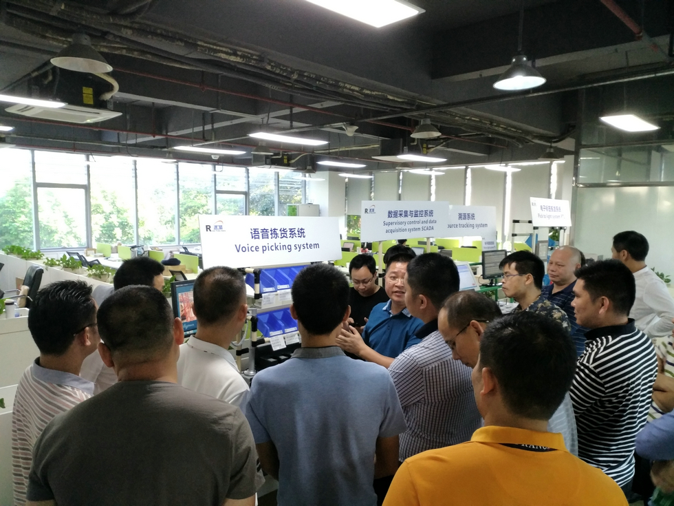商會代表團在認真了解速威語音揀貨系統以及電子標簽揀貨系統