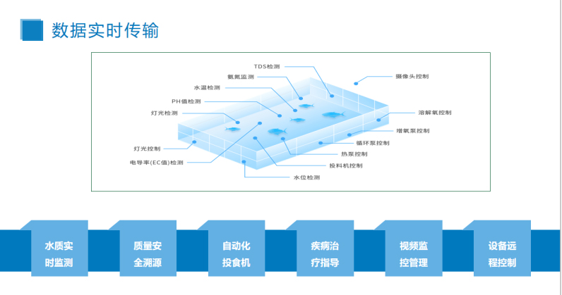 智慧水產養殖整體解決方案是基于物聯網、互聯網、大數據、云計算、人工智能、區塊鏈等技術的水產養殖智能生產管控和信息化管理的一體化解決方案。它面向規模化、集約化的水產養殖基地(魚、蝦、海參等),智能水產養殖整體解決方案充分發揮農業科技技術在水產養殖中的作用,能夠幫助水產養殖基地提升水產養殖生產的精準性、科學性,提高管理的效率,提升水產養殖生產過程的質量管控能力和質量安全的可追溯性,推進了水產養殖基地的信息化水平。