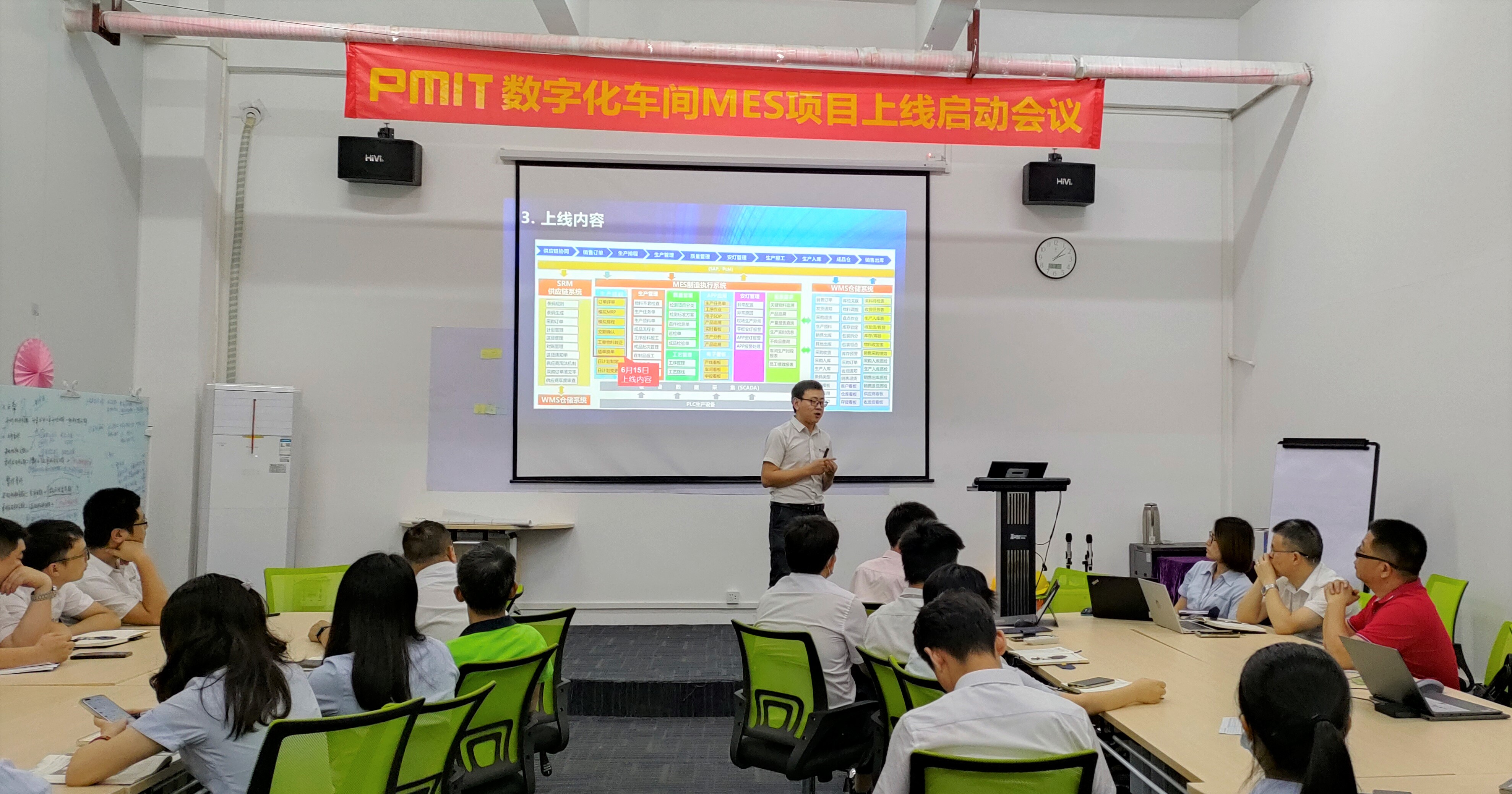 澳美高新項目經理趙經理對項目計劃排程、MES1實施計劃、當前項目進度、上線內容、詳細功能說明、上線計劃及上線策略、問題處理策略進行了詳細說明。各IT、技術、生產制造、品質、采購、PMC、銷售部門關鍵負責人及各部門關鍵執行人員都對上線的數字化車間充滿期待。